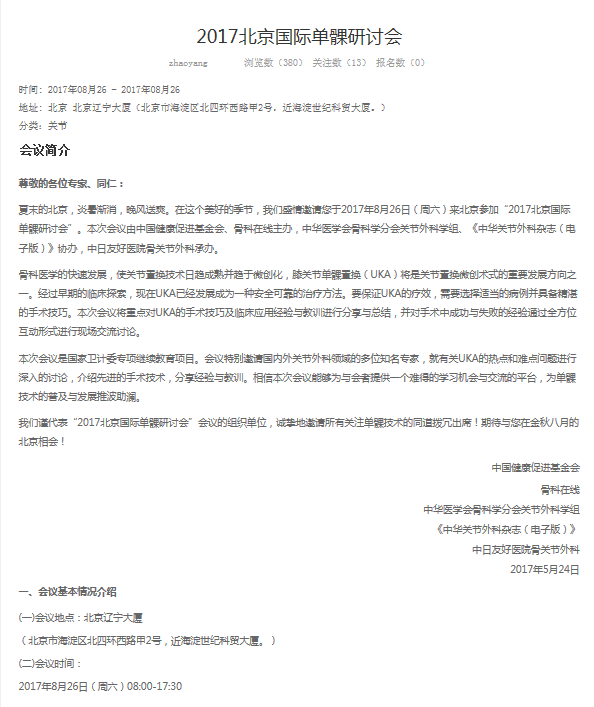 2017北京國際單髁研討會
